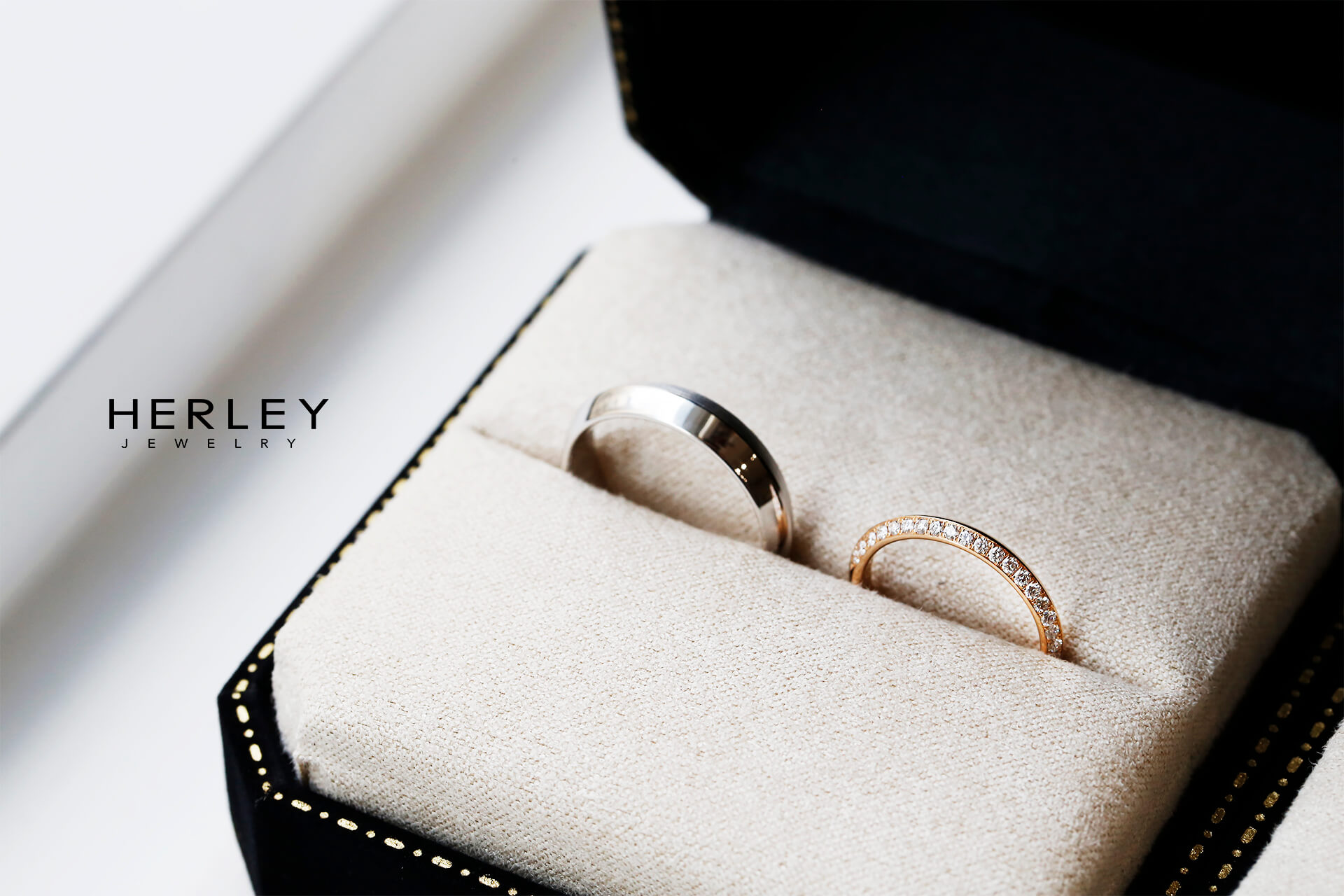 《HALO》分為細版與寬版,以俐落的刀鋒造型呈現,展現簡約而不失個性的風格。男戒可選擇一半霧面一半亮面,或全亮面,如同愛情中多變的面貌,既有深沉內斂,也有璀璨耀眼。