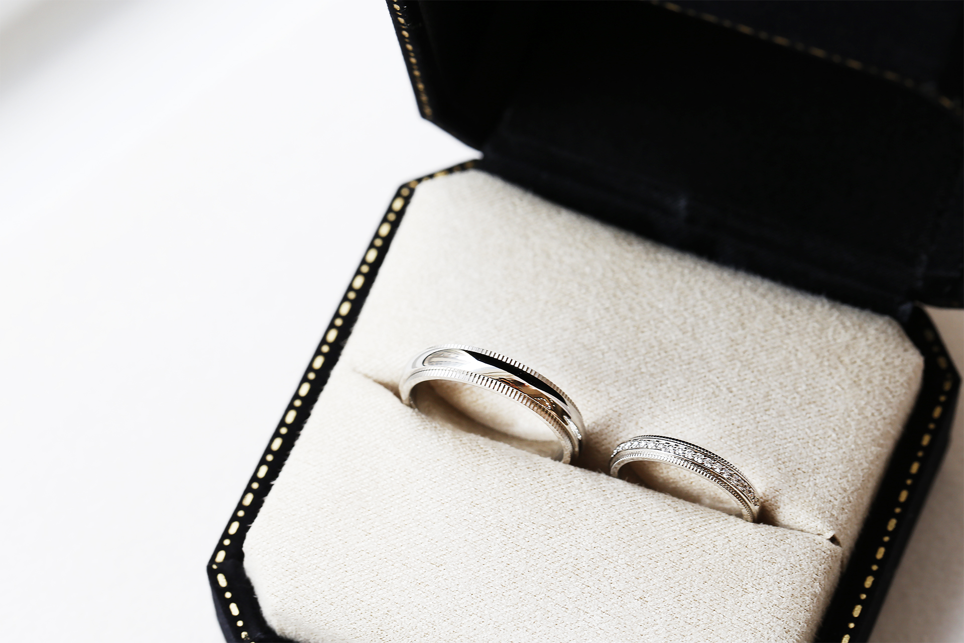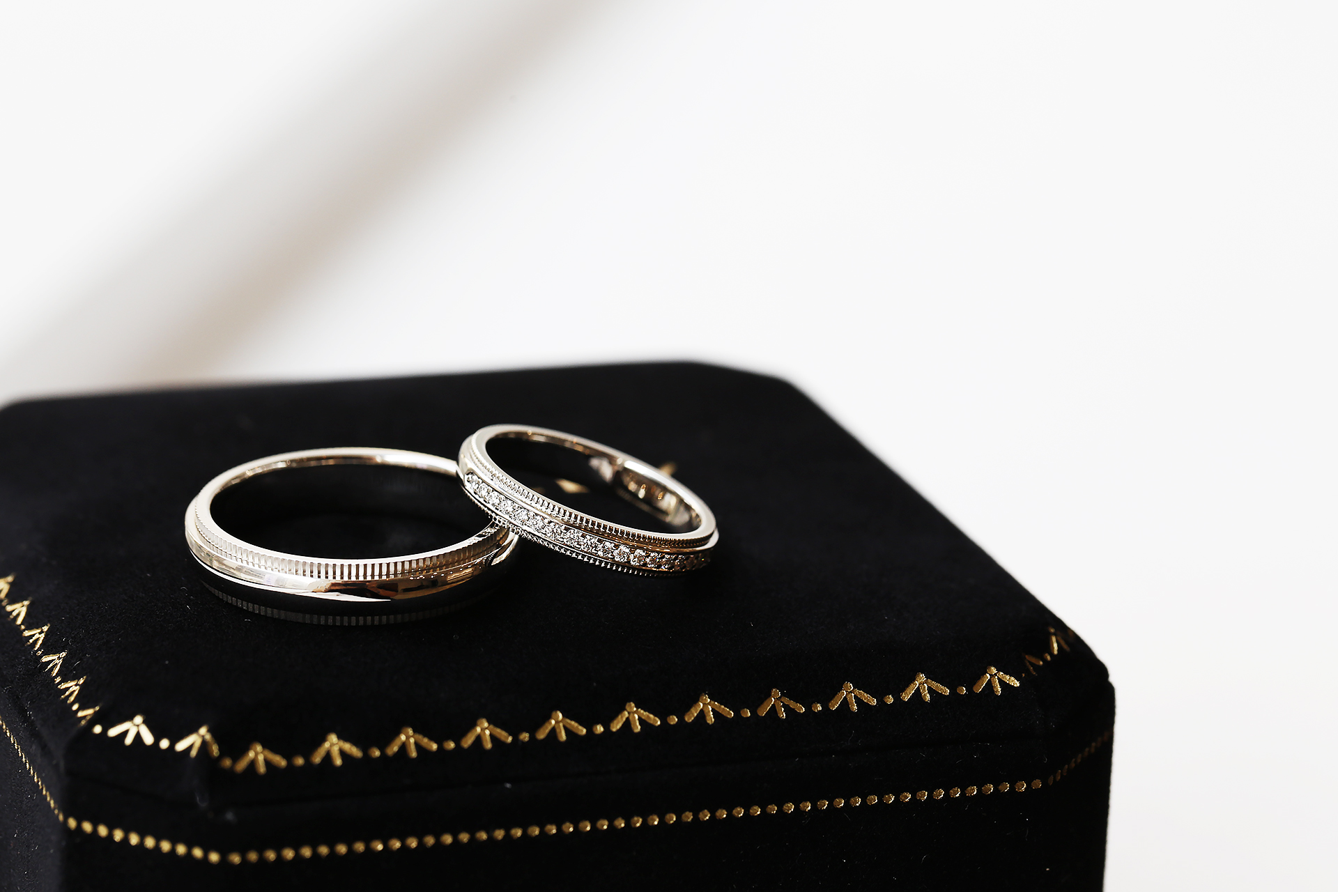 女戒則以細膩的珠邊與鑽石點綴,光芒閃爍,彷彿紀錄著你們在分分秒秒中,那些無數個甜蜜且值得紀念的瞬間。
