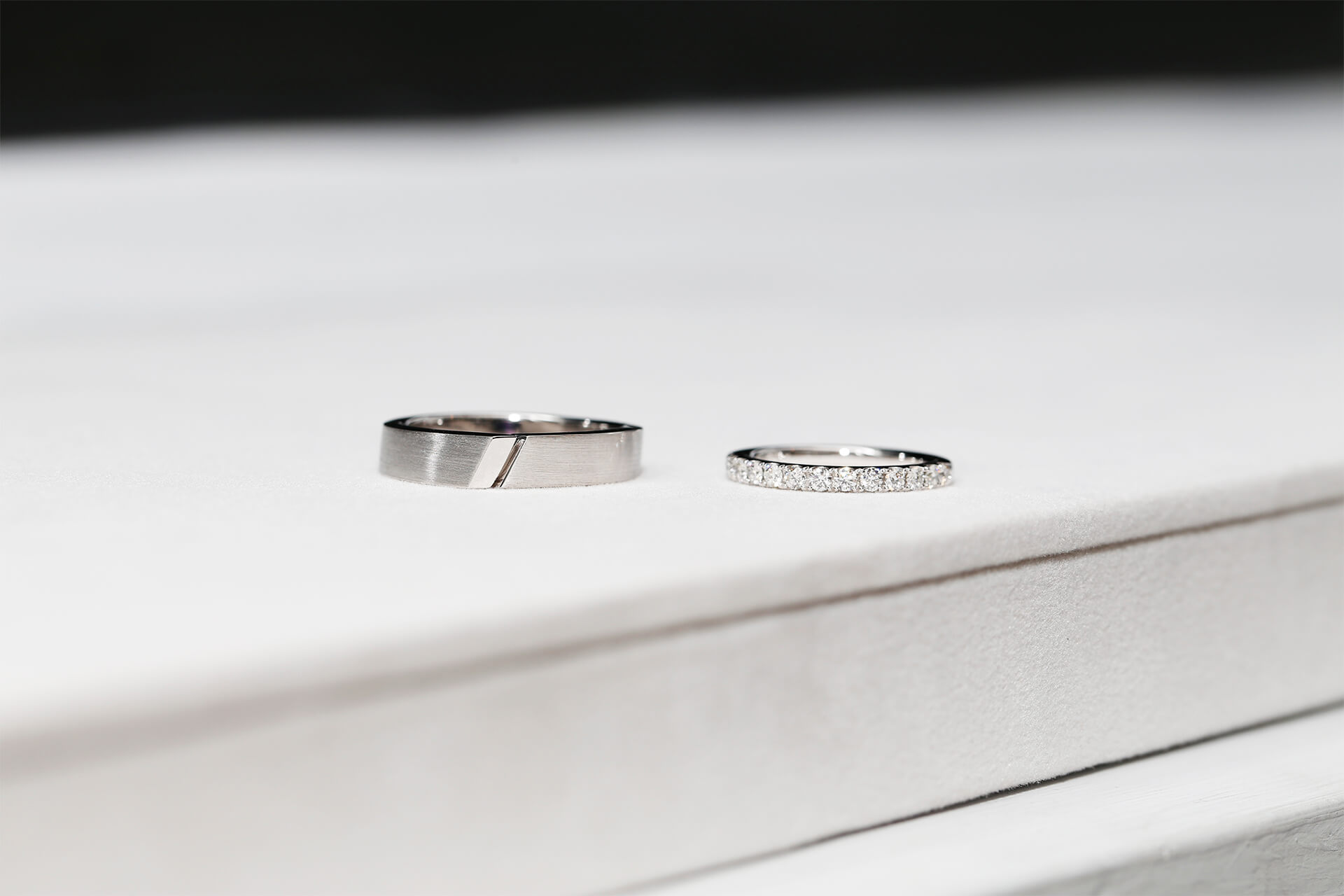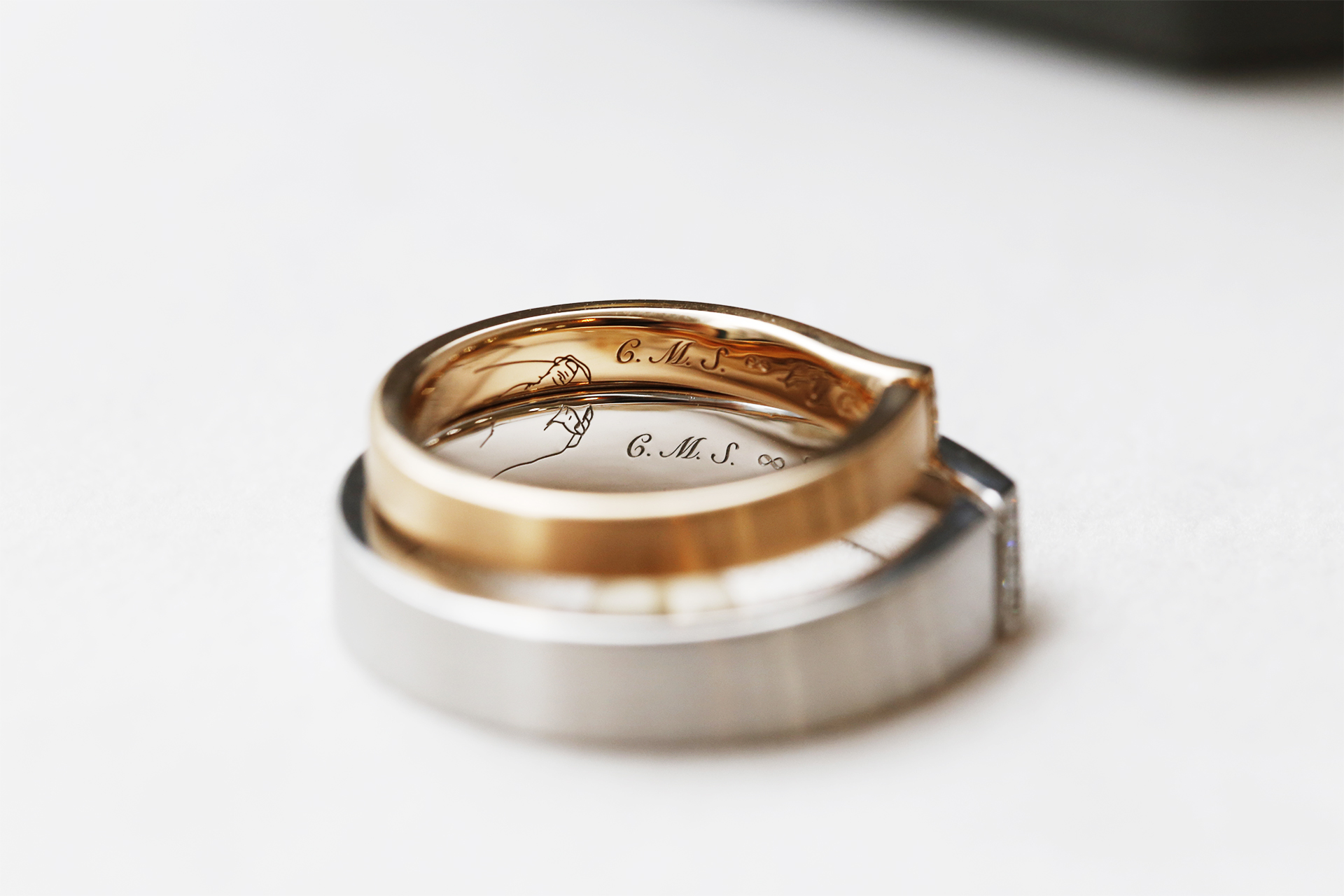 我們打破戒指固有的圓形印象,將戒圈側面設計成水滴狀。它象徵著人生旅途中遇到的種種挫折,有了彼此,這些起伏不再是阻礙,而是共同面對、攜手克服的見證。